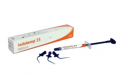 Iodotemp 25 представляет собой готовую к применению пластичную пасту с характерным запахом йодоформа. Пасту применяют непосредственным введением в канал при первом или втором посещении, в зависимости от случая, поскольку Iodotemp 25 исключает предварительную медикаментозную обработку каналов. Паста не твердеет, благодаря этому лечение можно возобновить во время следующего посещения, исключая риск сделать канал недоступным в результате полного и окончательного его заполнения.